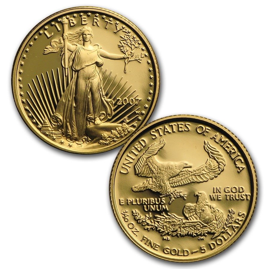 1986 marked the first introduction of the Proof American Gold Eagle Coins. 2007 Proof American Gold Eagle coin is now the 21st release of the most in-demand American collection of all time. Now, you can be the proud owner of all four weights that were released in the year 2007 for the Proof American Gold Eagle Coin! They include 1 oz, 1/2 oz, 1/4 oz, and 1/10 oz! This box collection continues to draw in high demand from collectors and investors all around the world! This is because the price of gold experienced a steady rise in the year 2007, increasing the value of the coins for a very long time!