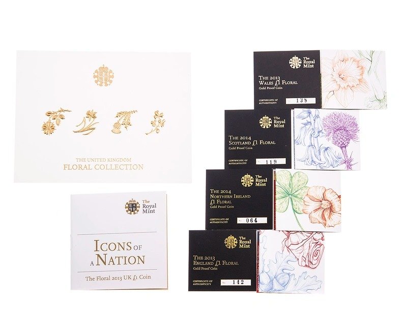 2013 Proof Gold £1 Pound Floral Collection Set Boxed