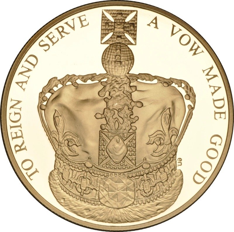 This Gold Proof £5 coin (aka Quintuple Sovereign, or Crown) was issued to celebrate the 60th anniversary of Queen’s Coronation.