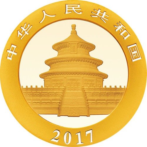 The reverse of the 2017 30 Gram Chinese Gold Panda coin includes the image of the Temple of Heaven. Located in south-central Beijing, the Temple of Heaven was built in the 15th century and is just one building in a larger complex of religious buildings and social gathering sites.