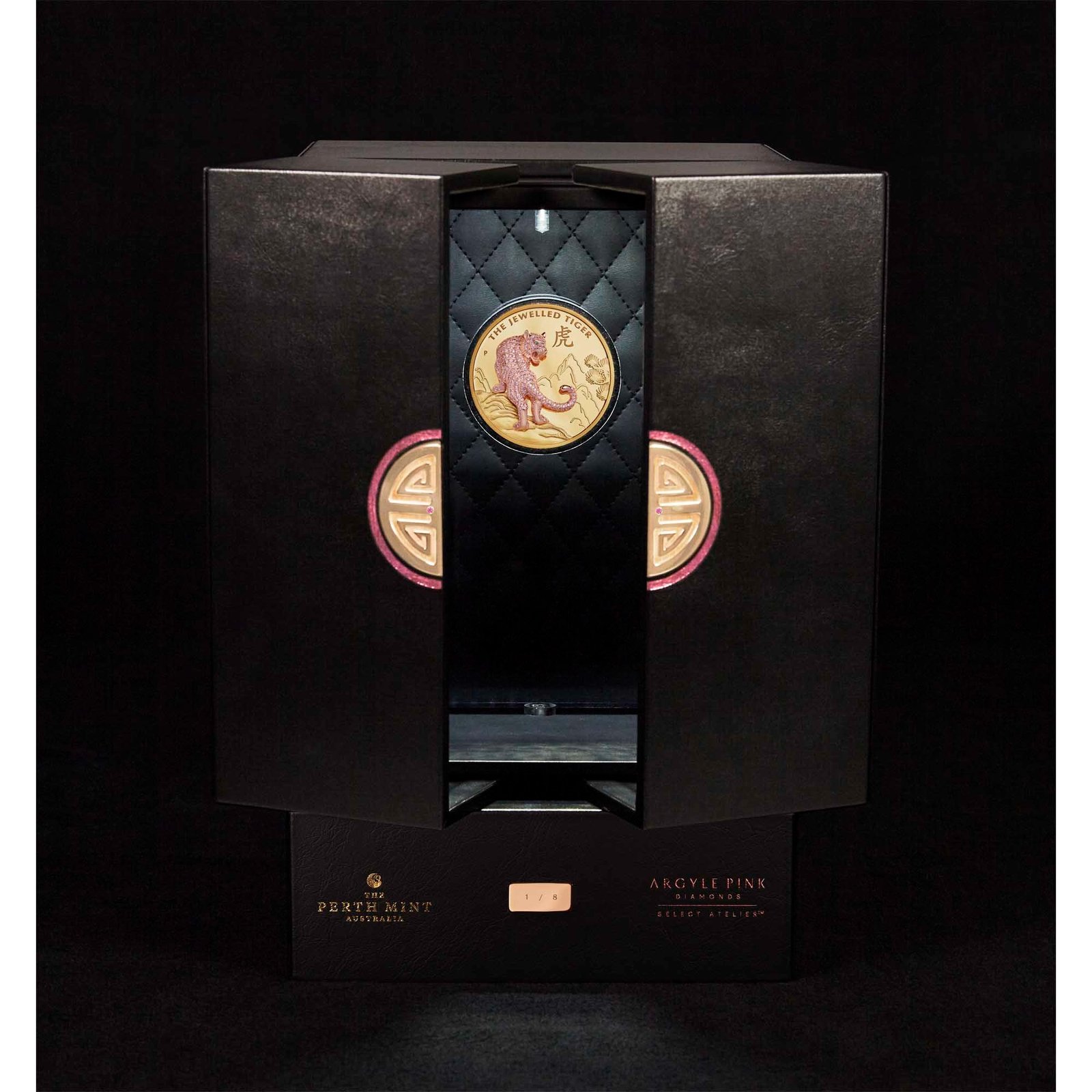 Befitting The Jewelled Tiger’s priceless value, the precious coin is mounted within a luxurious display case adorned with 18-carat gold furnishings and inset with two additional Argyle Pink Diamonds™. Each coin in the limited mintage is accompanied by a numbered Certificate of Authenticity.