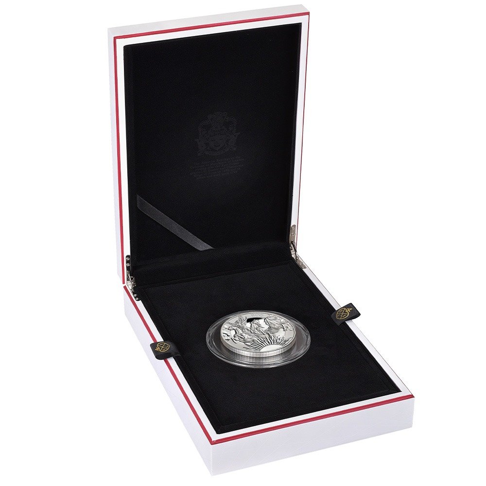 Each 2023 10 oz Proof St. Helena Goddesses Series Eos Coin in this online JM Bullion listing will arrive in original mint packaging. This includes both a presentation case and a Certificate of Authenticity. These coins were produced by the East India Company in partnership with St. Helena, where they are considered legal tender. They will arrive to you in new condition.