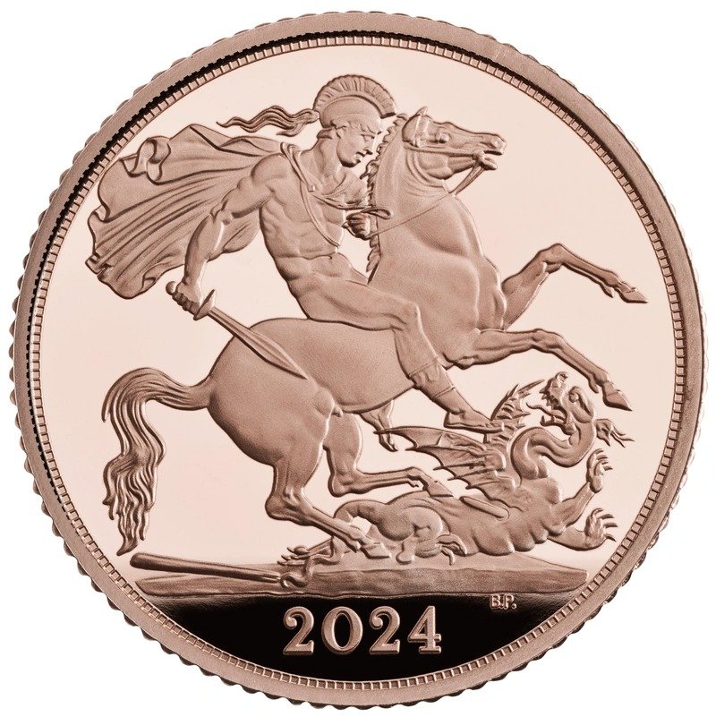 The reverse side of each coin features the enduring St George and the dragon design by Benedetto Pistrucci, which has been associated with The Sovereign since 1817. On the obverse side is the uncrowned portrait of King Charles III by Martin Jennings.
