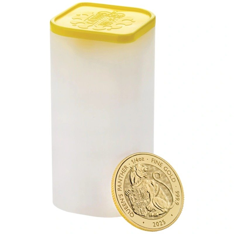 The 2025 Queen‘s Panther 1oz gold coin is the sixth bullion release in the Royal Tudor Beasts Collection from The Royal Mint. The collection features the 10 ‘Beasts’ statues that line the Moat Bridge at Hampton Court and which represent the families of the King’s line.