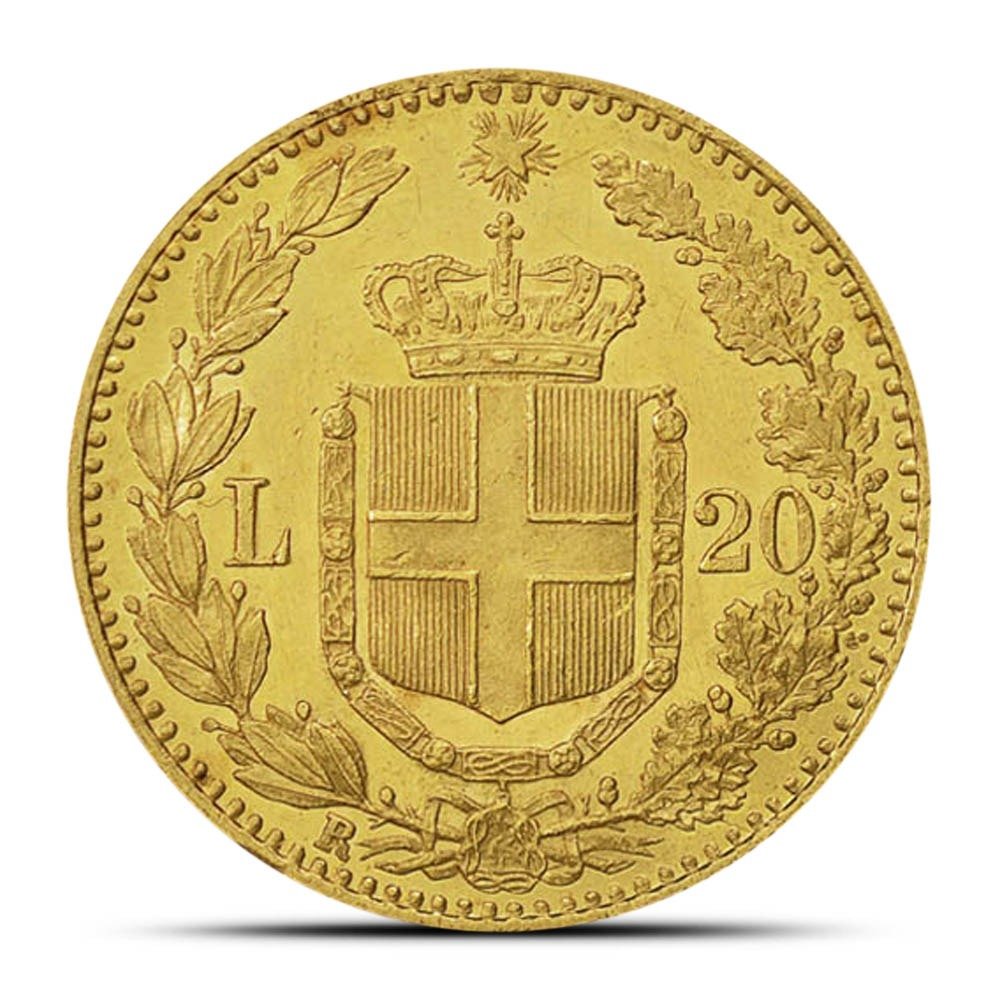 20 Lire Gold Coins issued between late 1878 and 1900 featured the bust of Umberto I. He reigned from 1878 until he was assassinated by an anarchist in July 1900, and oversaw Italy’s colonial expansion in the Horn of Africa and its Triple Alliance with the German Empire and Austria-Hungary.