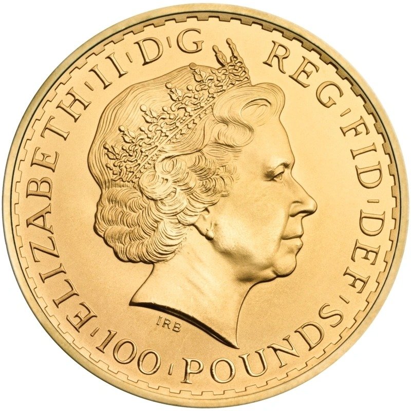 A British bullion gold coin first introduced in 1987 with a face value of £100.00. This coin contains one troy ounce (31.10 grams) of fine gold and is a 22kt gold coin.